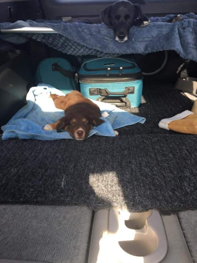 Opi and Andy on the ride to our place.