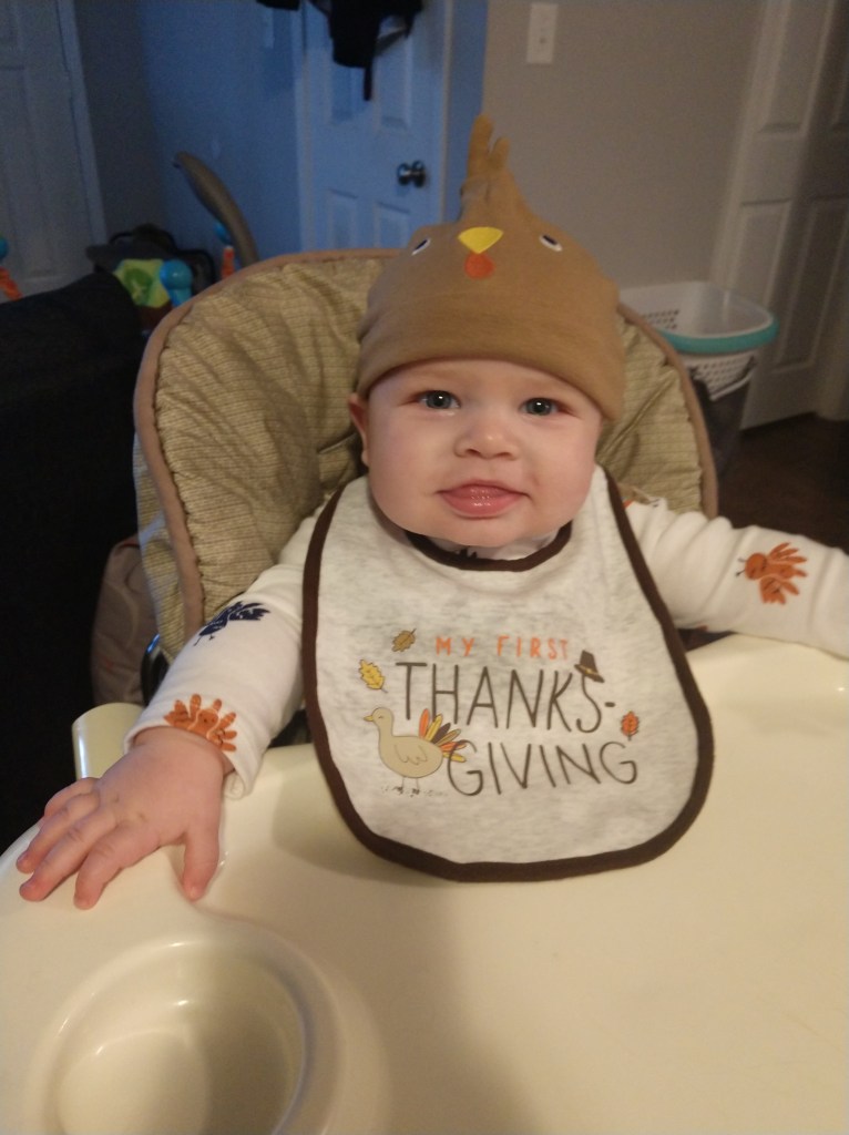 Of course, we celebrated his first Thanksgiving — both for us as a family of three and in our own house. I thought the outfit was necessary.