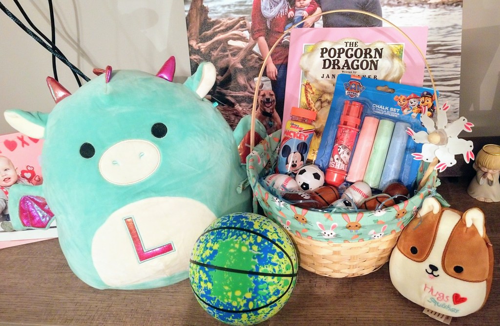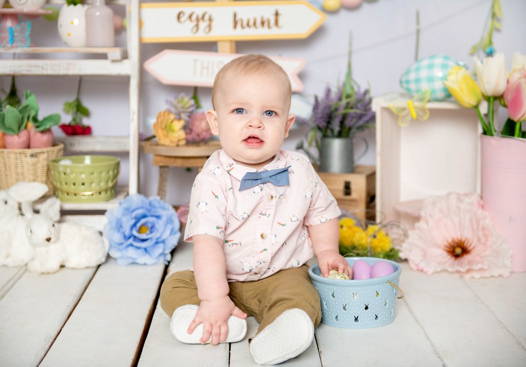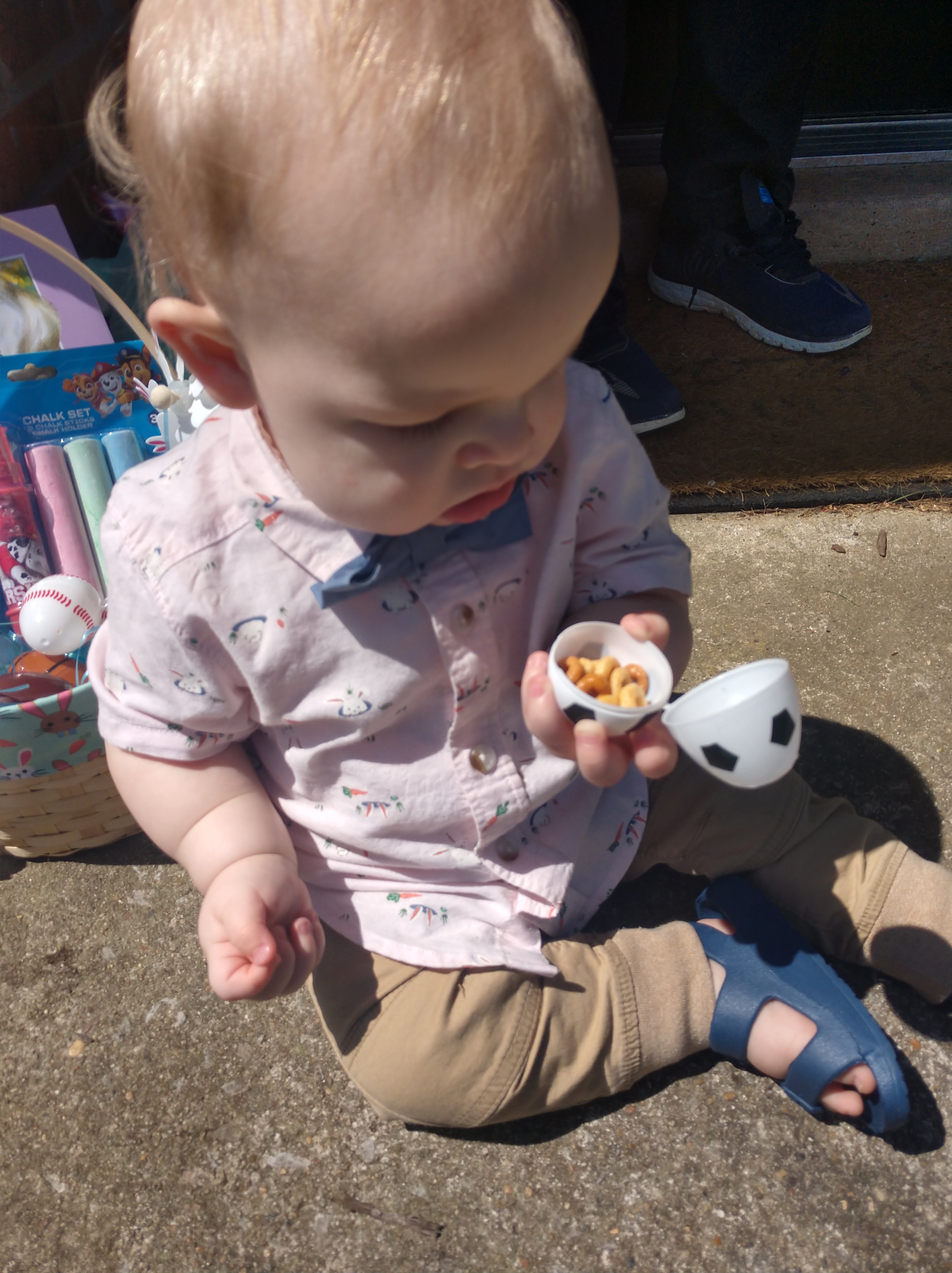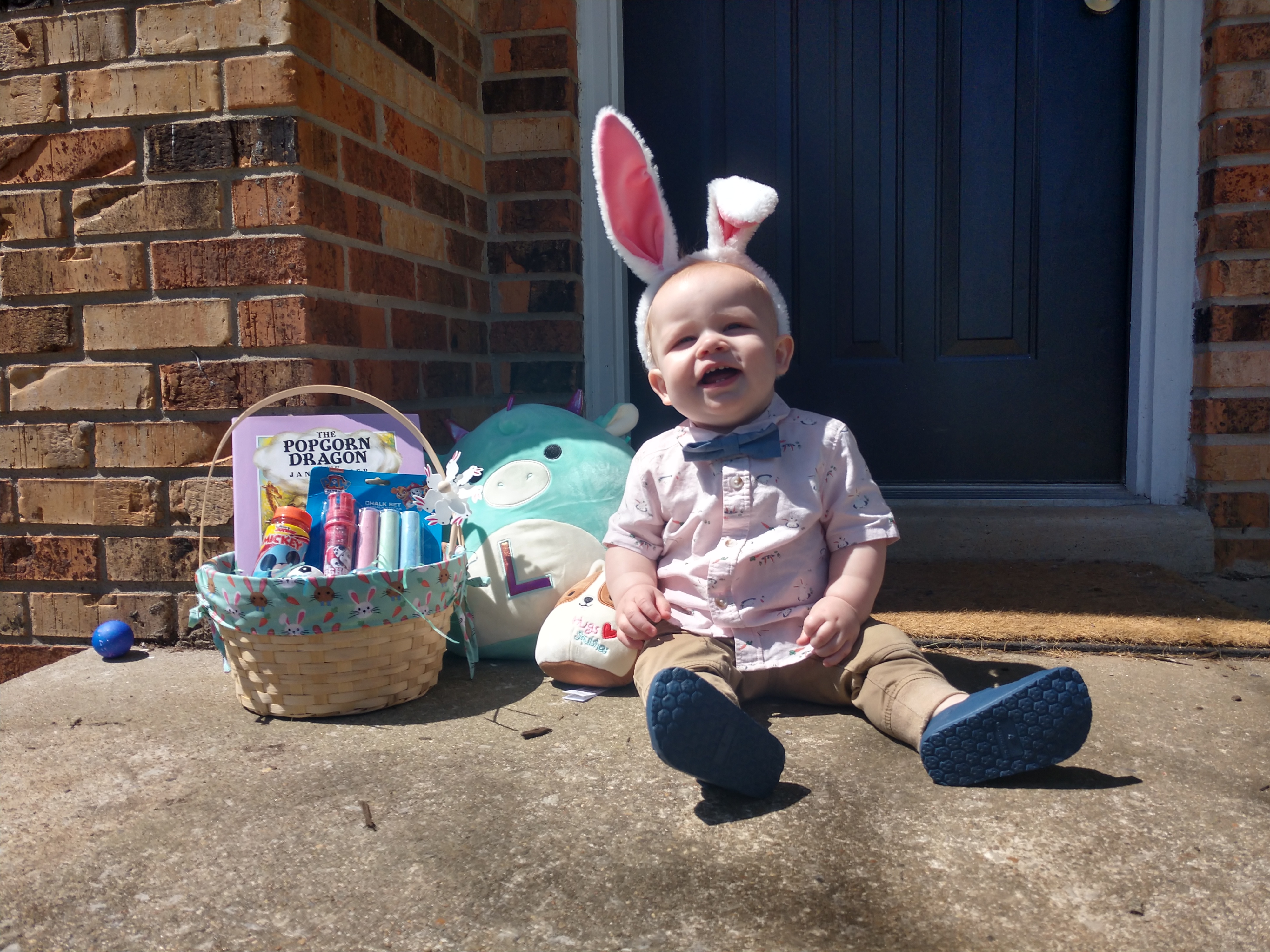 The bunny spoiled Little Man with a basket full of goodies.
