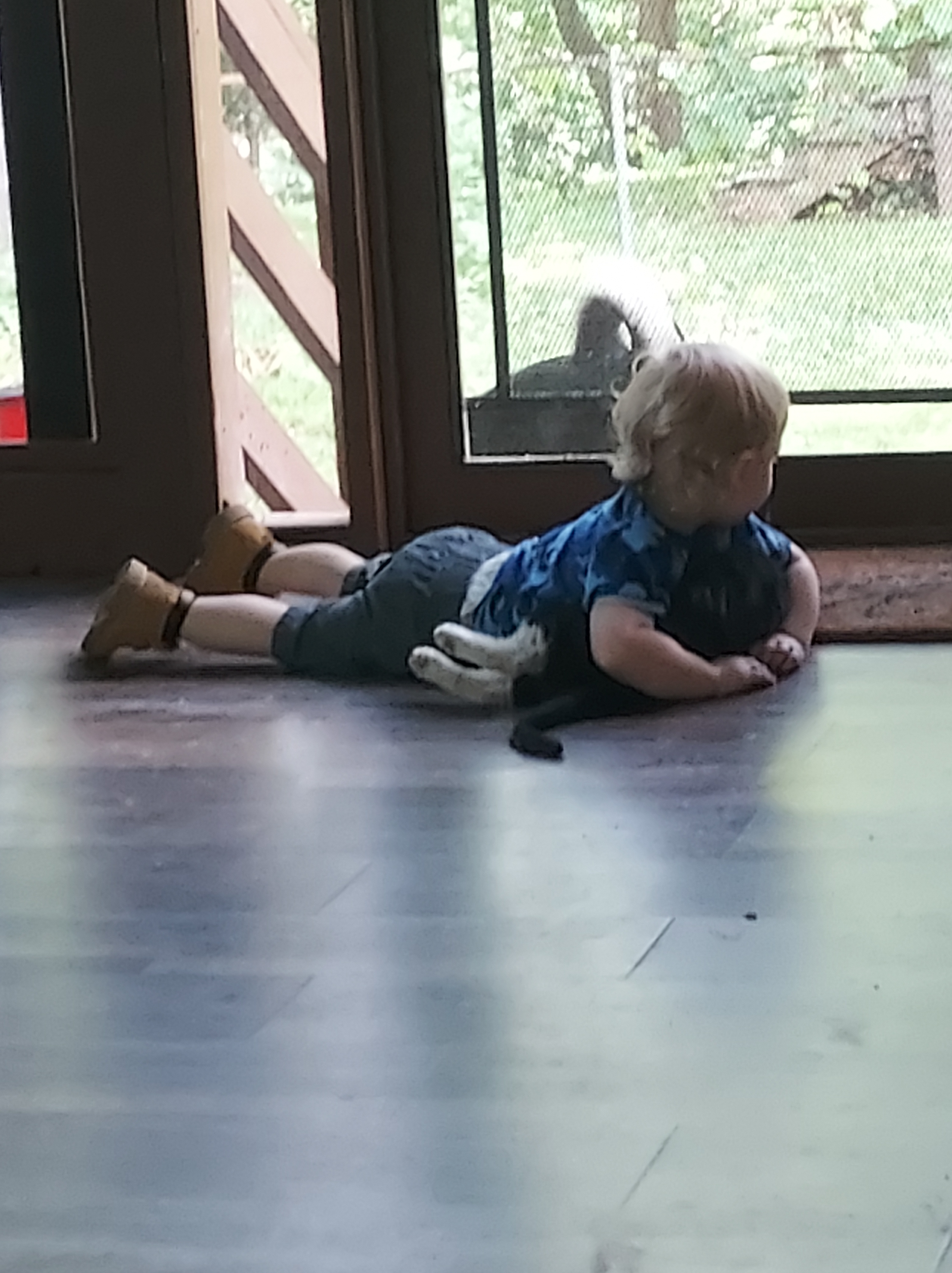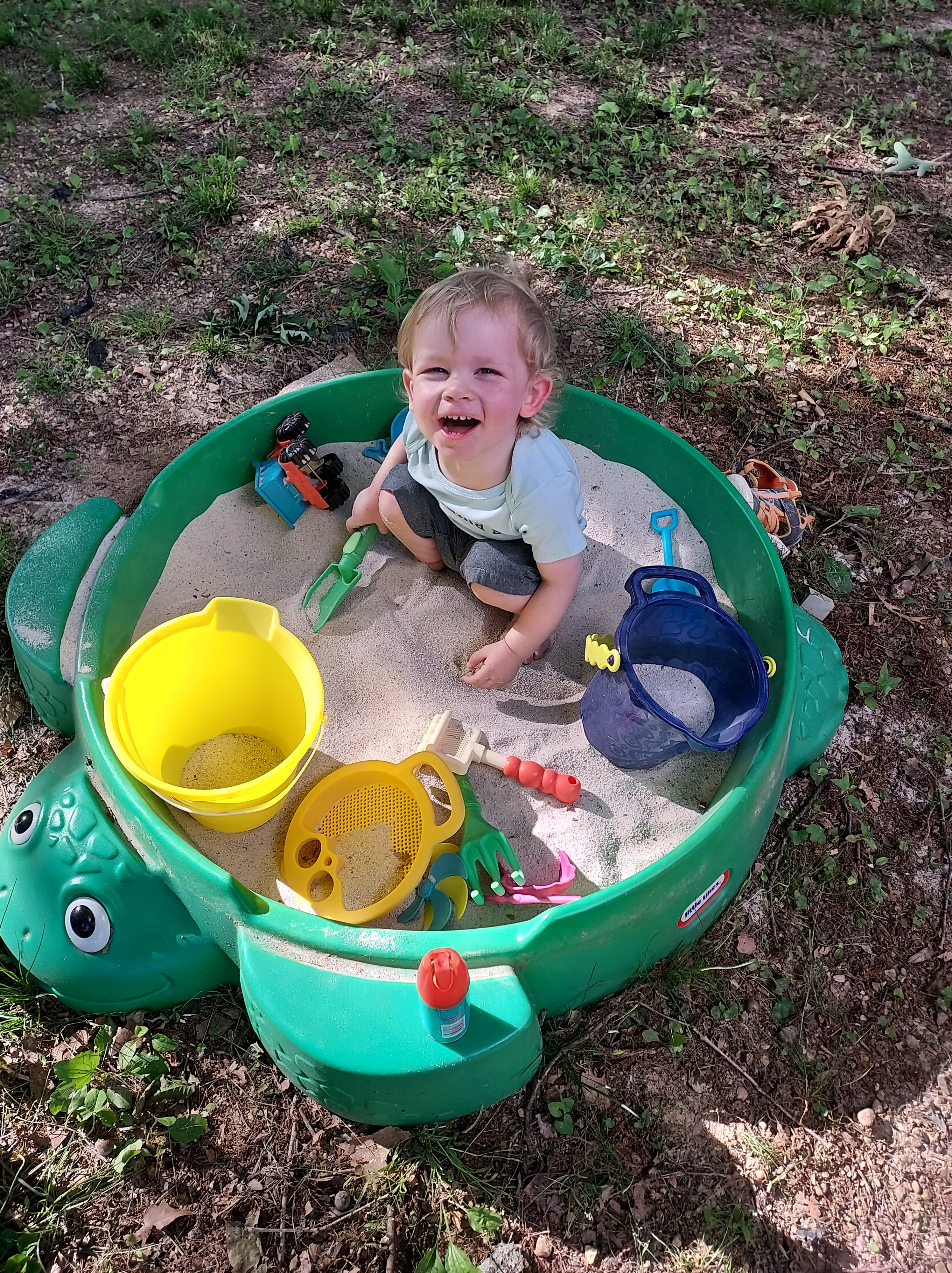 He is saying some words, but he doesn’t like to repeat them on demand. I’m sure we’ll hear about it when we go to his appointment. Until then, I’m not worrying. His needs are met and that’s fine with me. He’s too busy for words!