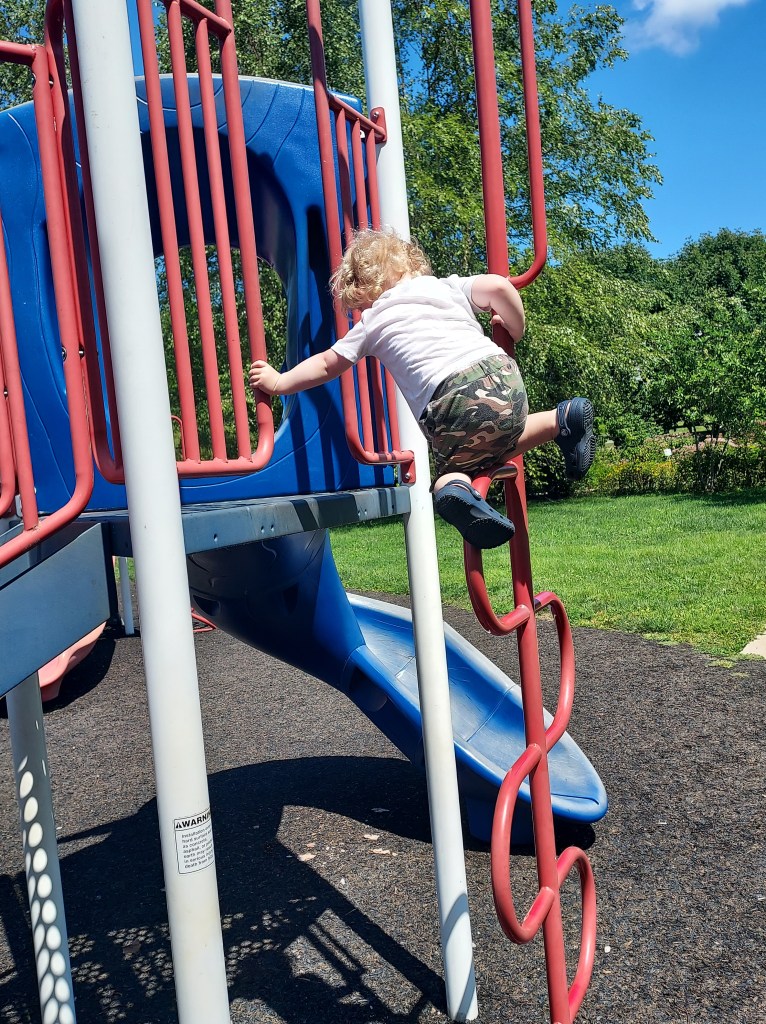 This last week was full of hanging out with the Mister while he went disc golfing, so the big kid playground was a must for the monkey.