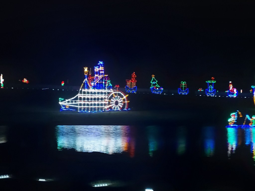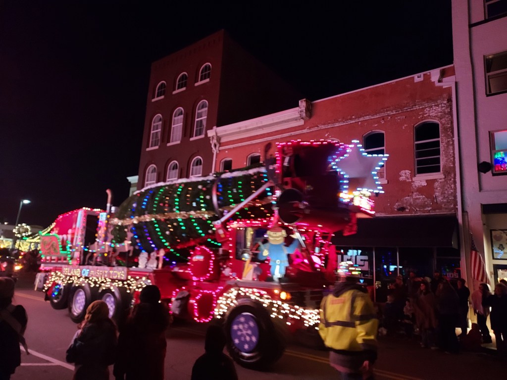 Following photos, we decided to check out the Lighted Christmas Parade. We’ve lived here quite awhile and never went, so since the weather wasn’t too bad, we took a chance and went. Little Man loved all the lights and was pretty interested in the marching bands.