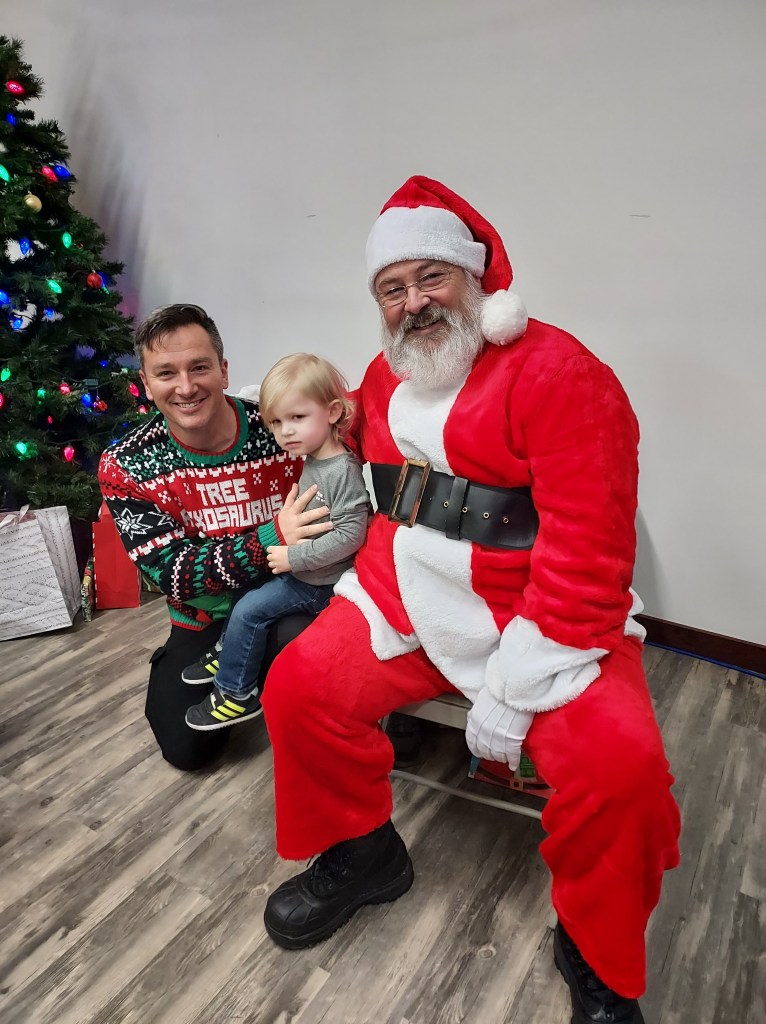 The kiddos even got a special visit from Santa. Little Man wasn’t 100% sure about this one but he still high-fived and got a nice little gift.