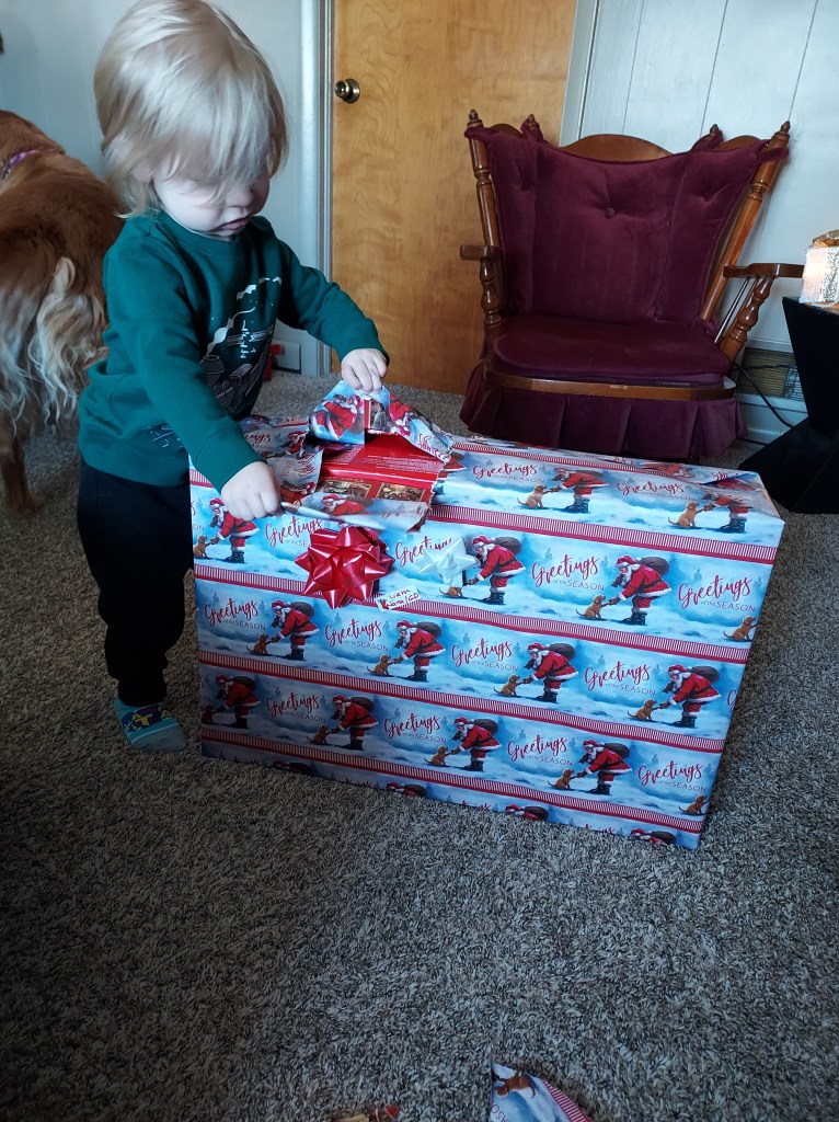 Santa didn’t come on the 25th since we had our family Christmas on the 28th, but we let Little Man unwrap some presents on the 26th.