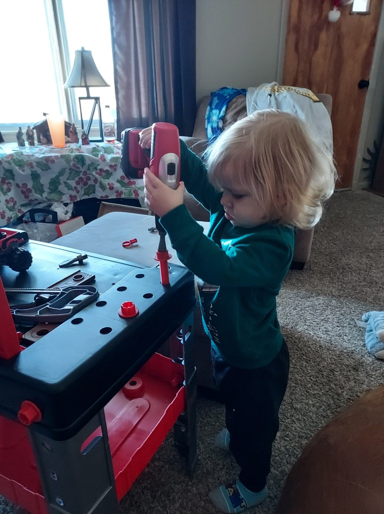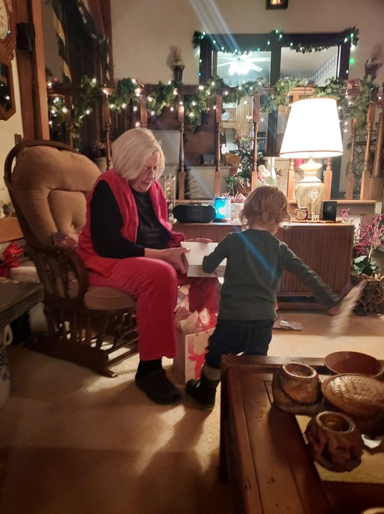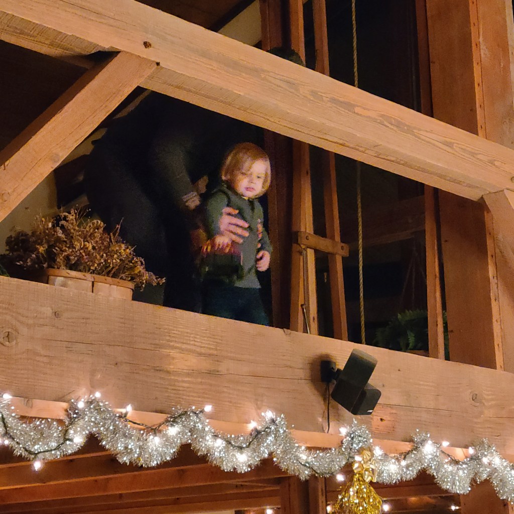 On the 27th, we got to visit Grammys and Gramps and have a little Christmas get together with them. Little Man thoroughly enjoyed Gramps’s loft and was enthralled with their fireplace.