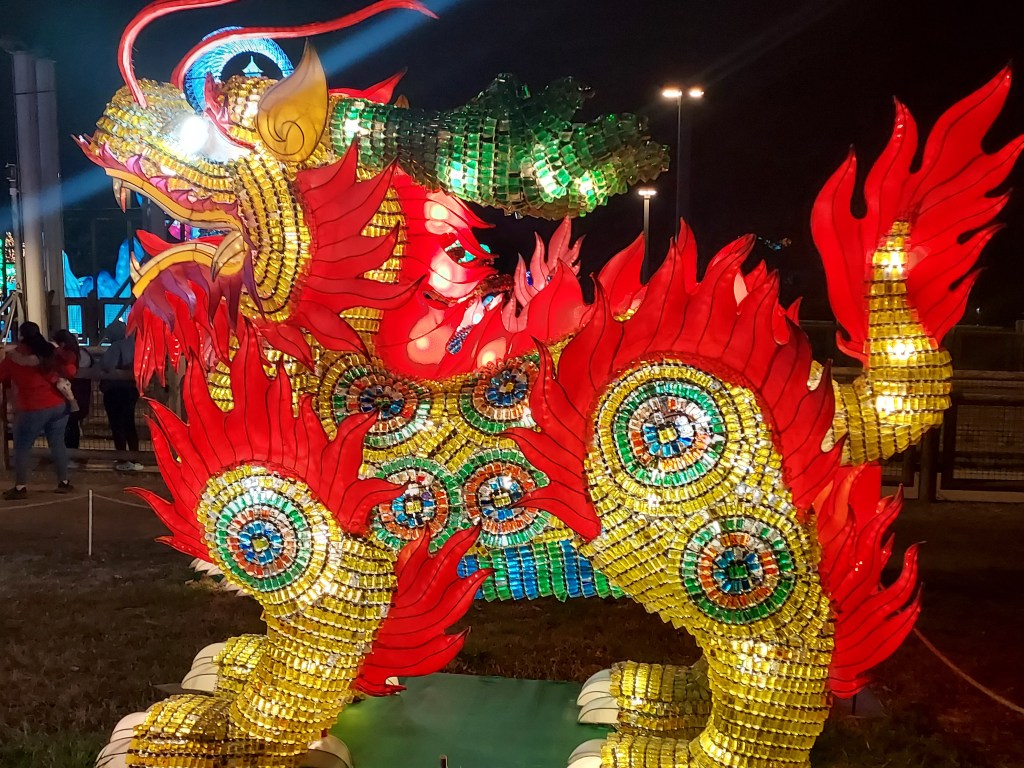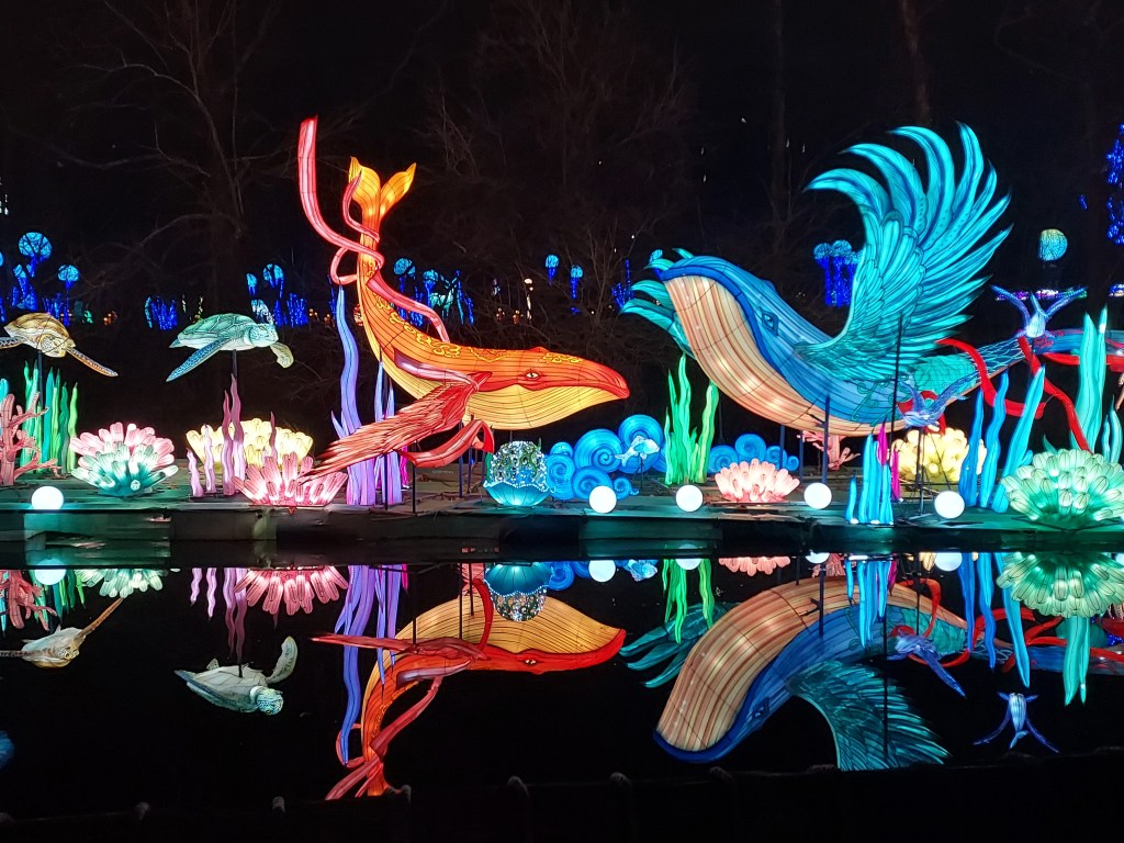 The water below was so still; the reflection was perfect!The walk-through dragon tunnel was stunning.This guy was made of small vials of liquid.