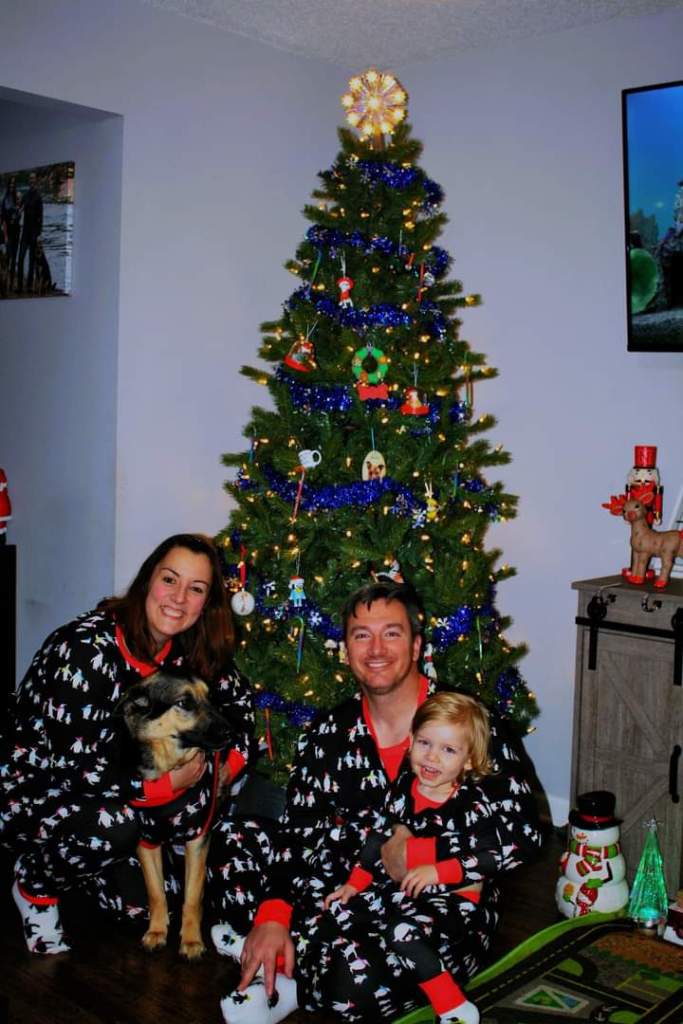 This year’s matching jammies were penguins and it was even more difficult getting a good photo with Indie.