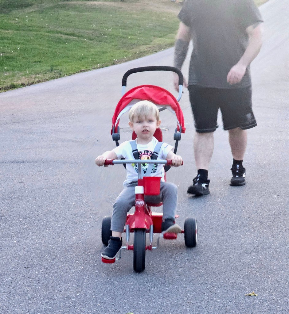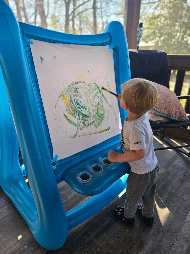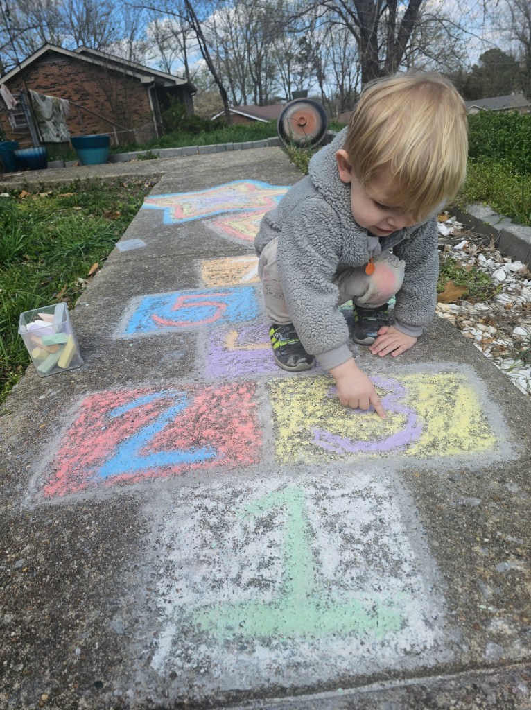 We wrapped up the month with sidewalk chalk, helping the Mister mow, painting on the deck, and learning to ride a tricycle.