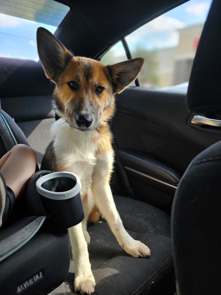 Remember Athena from the Humane Association? We decided that we wanted to adopt her after thinking about her the remainder of the last weekend in April. We hopped in the car after the Mister took off early to go get her.