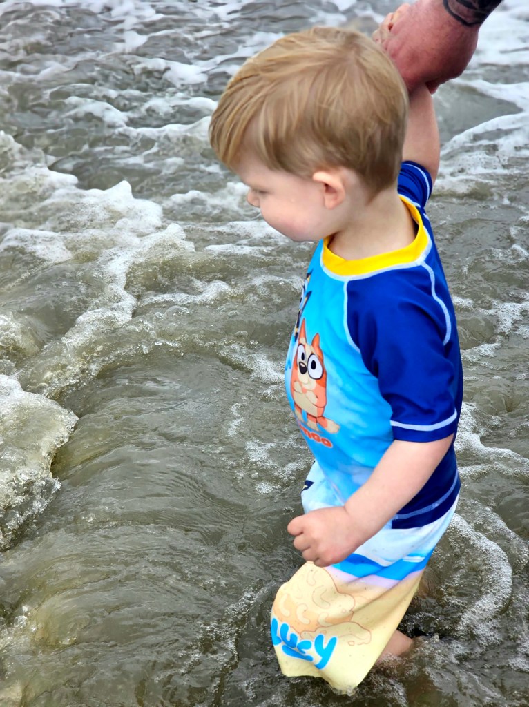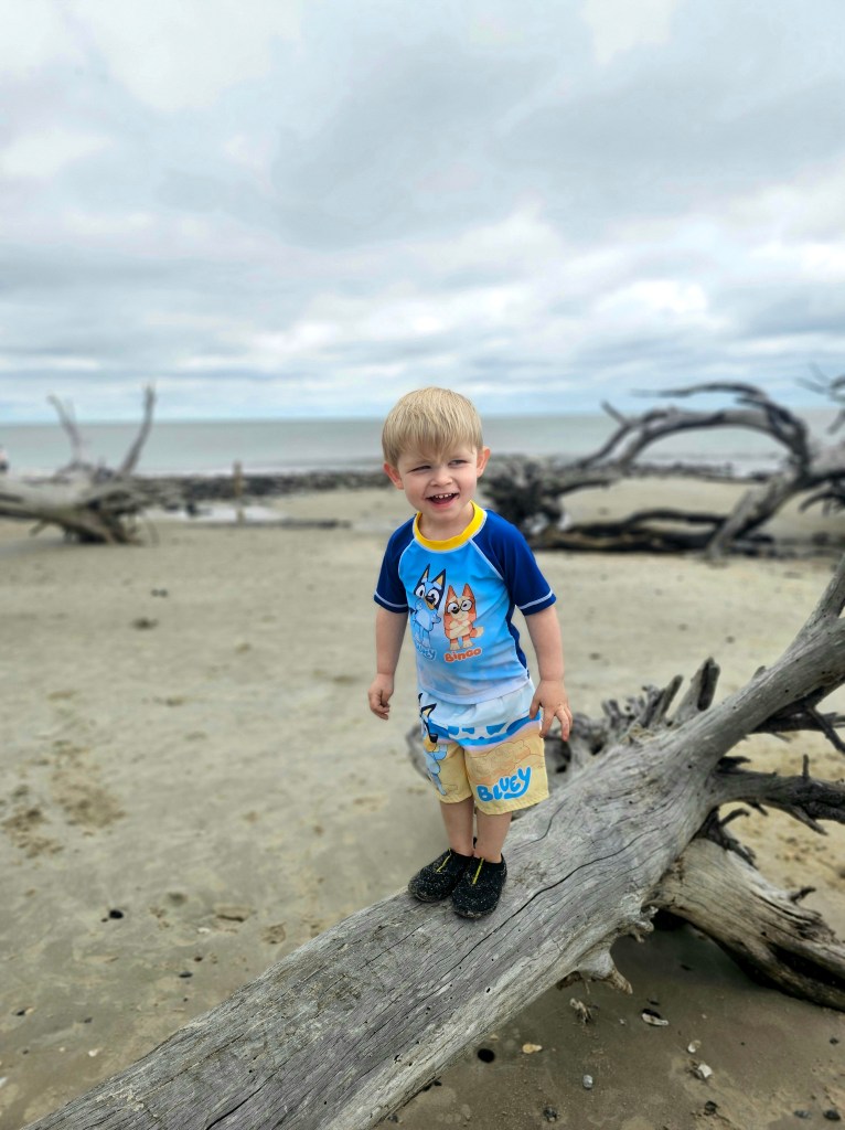 Thankfully, the rain finally stopped and the temperature warmed up enough to take Little Man to see the beach for the first time. We visited Driftwood Beach.