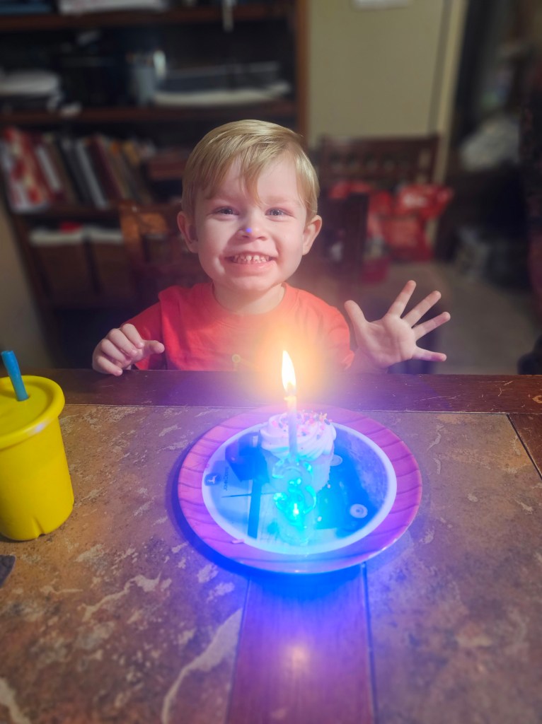 We drove to Nebraska on Little Man’s 3rd birthday. It was a really long day on the road. Thankfully, we left really early in the morning so we made it to my parents’ place before dark. We even got there early enough for Little Man to have a cupcake and open one of his gifts!