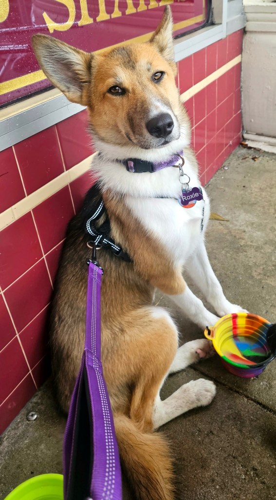 Roxie is our latest addition. It took us a long time to feel ready for another pup, but Indie was still grieving her brother, and her anxiety was getting worse, so we thought we’d see what the shelter had to offer. Thus, we added a very busy, loving monster to our menagerie.