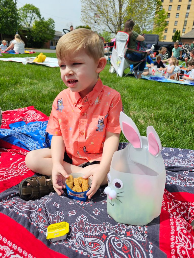 We had the egg hunt and family picnic at Little Man’s preschool.