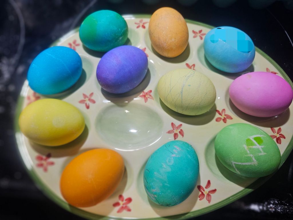 We tried using regular crayons before the dye. It didn’t work out too bad, and we learned we have to be careful or the shells will crack when dropped.