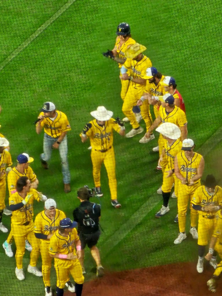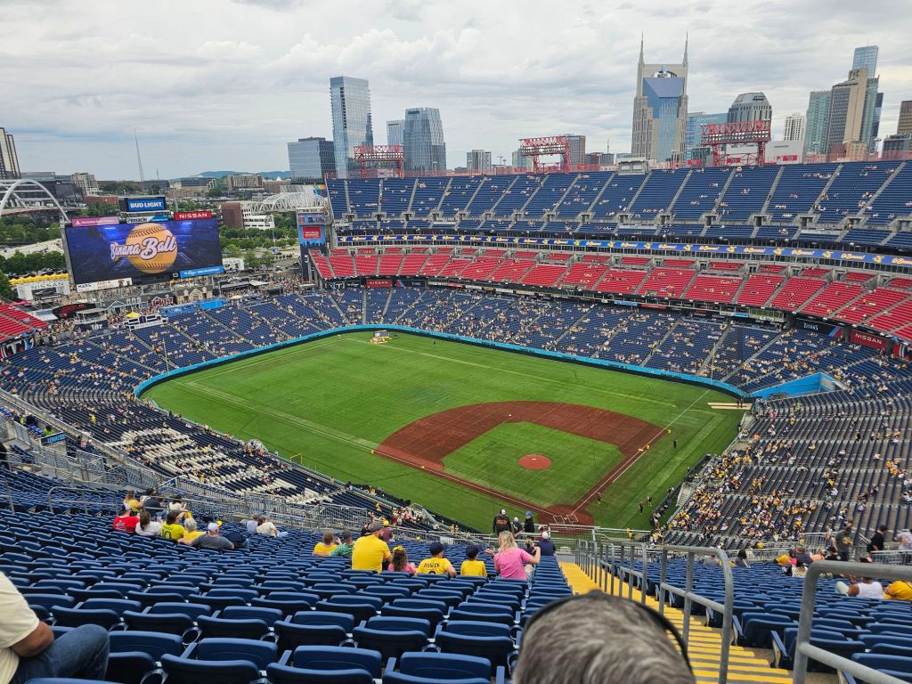The following weekend, we got to attend a Savannah Bananas baseball game in Nashville. It was such a fun experience, but there were entirely too many people (70,000 at Nissan Stadium) for my entirely too pregnant body. We had nosebleed seats so I was sure I’d go into labor just climbing all the stairs/ramps.