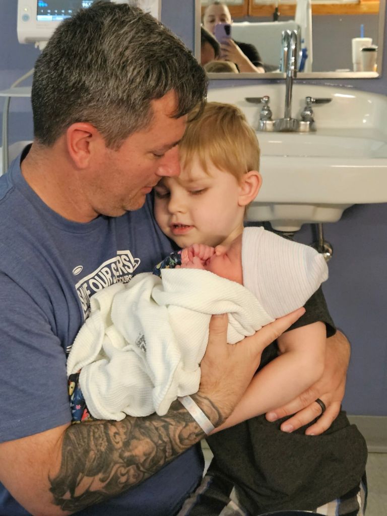 Little Man is still a bit apprehensive about holding her but he is adjusting.