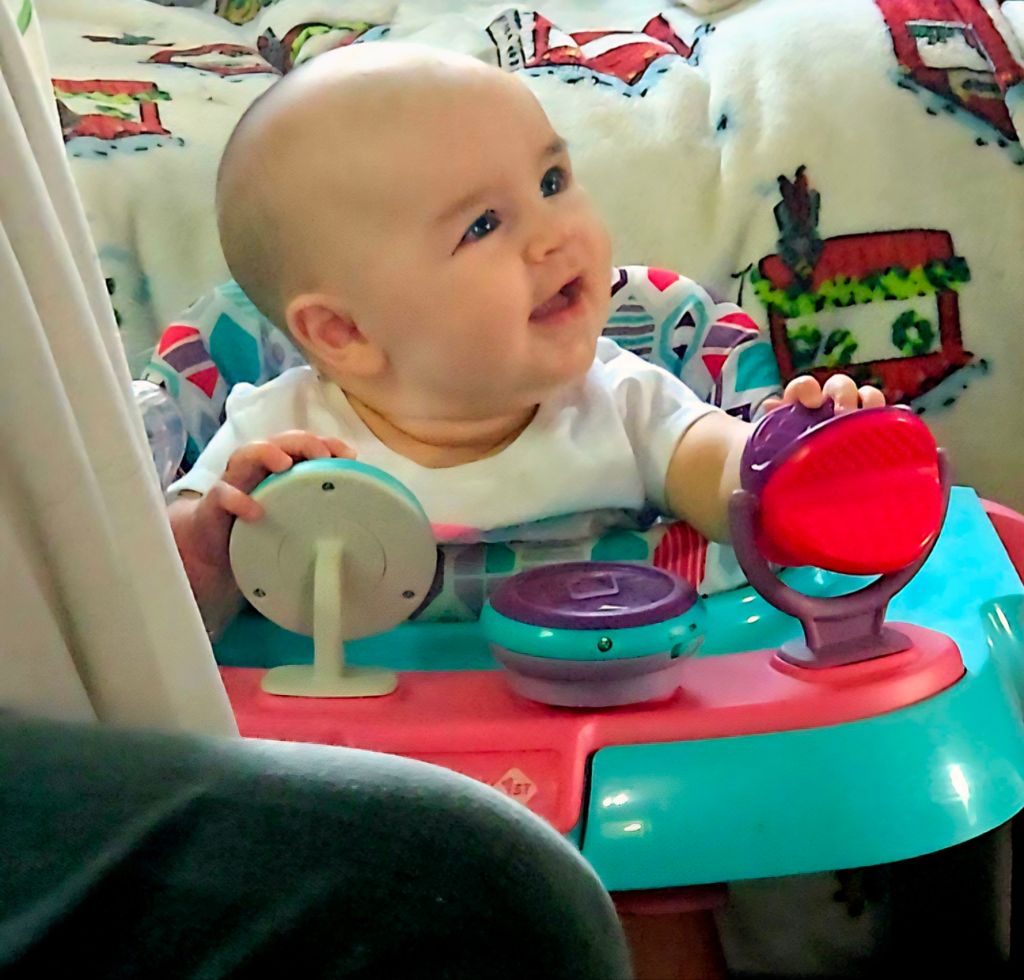 She cried for all of 5 seconds after her vaccines (she got boosters for DTaP, Hib, PCV, and polio, plus the flu shot and a rotavirus oral dose). We opted to come back the following week for her RSV shot since she’s been battling a phlegmy cough — like the rest of the house ALL month.