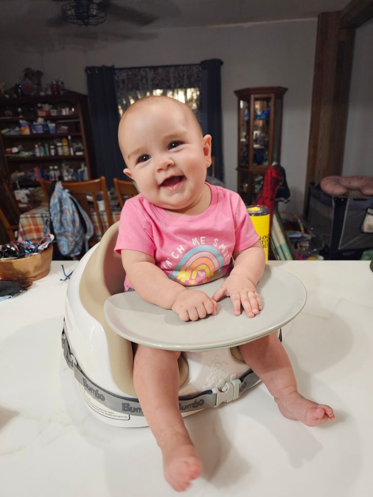 Then, it was time for Baby Girl’s 6 month check-up and vaccines. She’s weighing in at 16lbs 11oz (57th percentile) and is 26 3/4 inches long (81st percentile). She also has two bottom teeth popped through and has zero issues sitting up like a big girl.