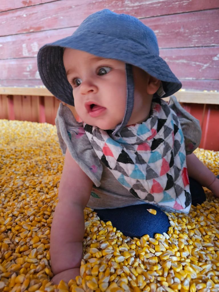 We had so many wonderful adventures. From finishing preschool and starting kindergarten and Cub Scouts, to bringing home Baby Girl and having her *this* close to crawling and showing off her two new teeth.