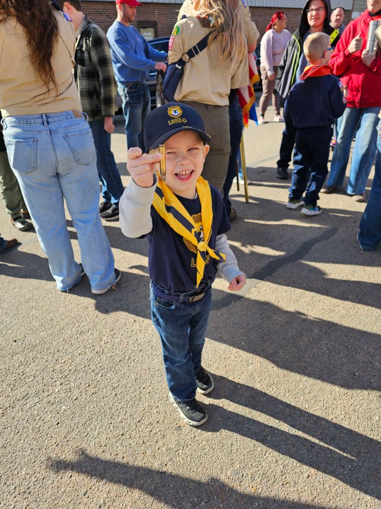 The next weekend, Little Man (and daddy) helped at the Veteran’s Day presentation with the local American Legion for scouts. He earned one of his community loops and a special bullet casing award for attending. He even got to carry the Lion flag for a little bit (the wind was terrible so it was short-lived but he did great).
