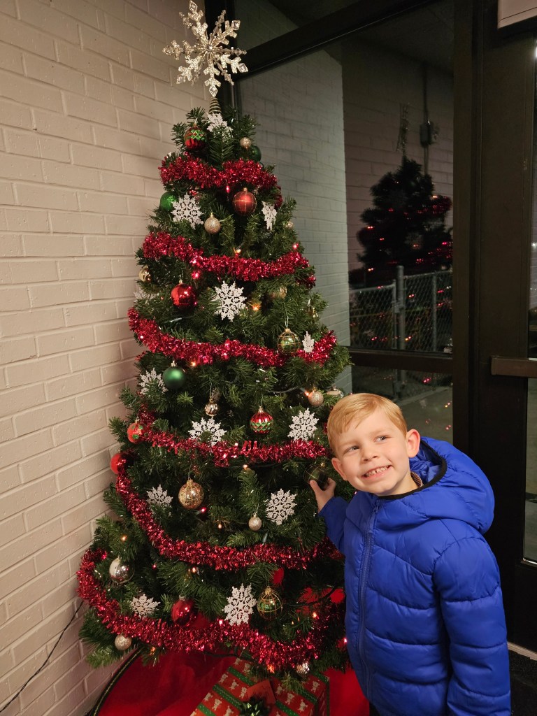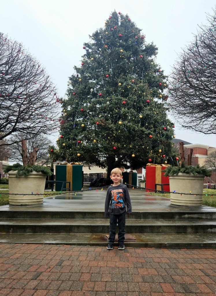 Little Man asked Daddy to take a picture in front of the huge Christmas tree at Southpointe.