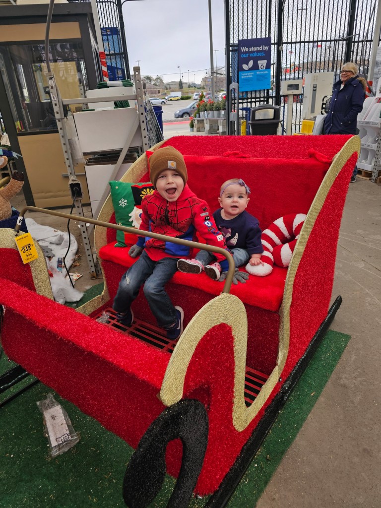 We wrapped up the weekend with a Lowes project and had to snap some silly photos in their huge display sleigh.