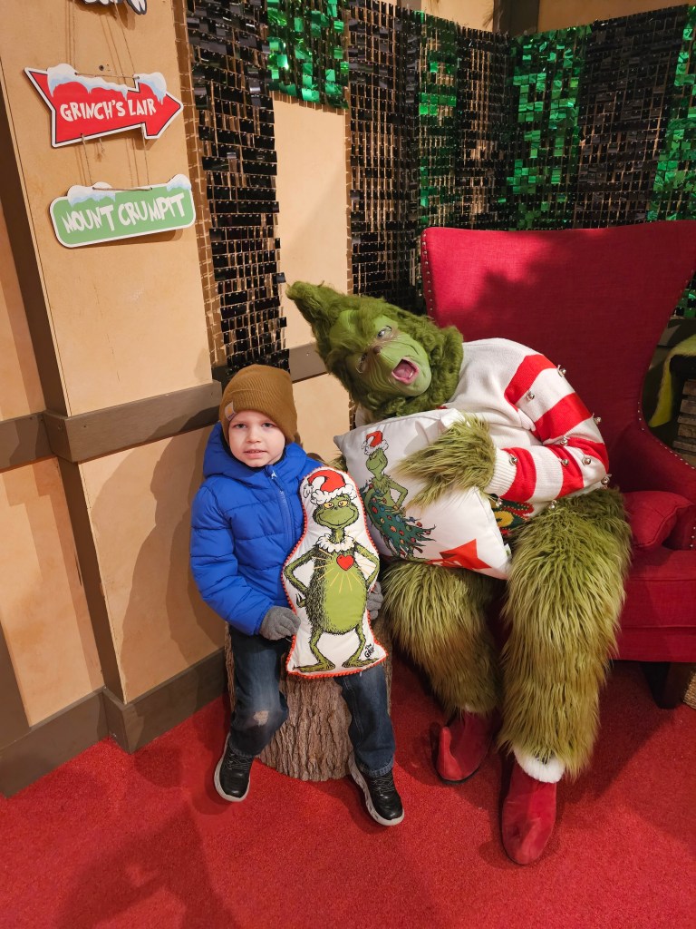 While there, Little Man worked up the courage to see the Grinch. He was excited while we stood in line but actually seeing him was a bit iffy.